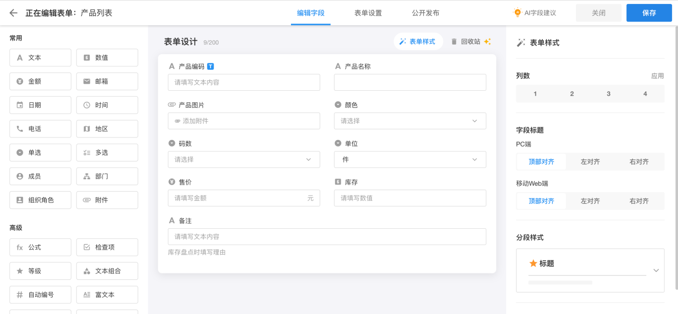 首先需要实现对底层数据对象的定义,将底层数据理解为多张Excel数据表即可,每个表单独立采集数据,用户使用不同的控件对数据进行操作和关联,除了编辑字段,还能在表单内自定义操作功能,所见即所得,大大降低了操作门槛,对非技术人员十分友好。