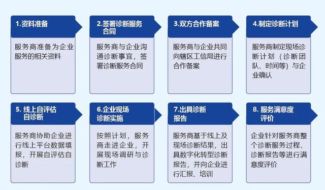 本次数字化转型诊断服务(不收取企业服务费用),包含以下8个流程环节:
